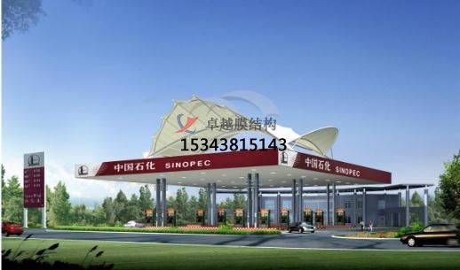 膜結構建築因其獨特的藝術性,優美的造型,濃鬱的現代氣息,被廣泛運用到建築領域的各種設施。加油站膜結構運用在加油站頂蓬上是再合理不過的選擇,因為加油站的頂篷是公路或地區設置名稱標牌的主要位置,是公路或地區的重要標誌;大跨度的膜結構在這種場合下的運用,能充分體現膜結構的主要特點,並有較好的標識招攬效果。為相關的道路或區域起到畫龍點睛的作用。