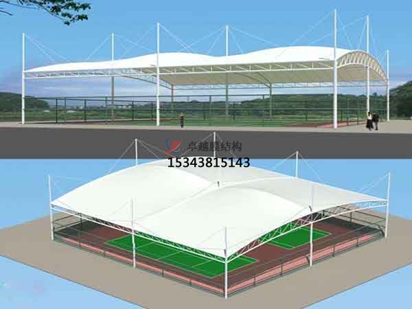 2、骨架支承式膜結構,由鋼構件或其它剛性構件(如拱、剛架)作為承重骨架,在骨架上布置按設計要求張緊的膜材,後者主要起圍護作用。