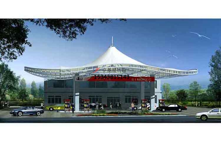 膜結構加油站加氣站除了藝術性和獨特性之外,它的實用性也不得不提,這歸功於膜結構加油站加氣站的材料的特殊性,膜結構加油站加氣站的主要材質是膜材,更特別的性質是強度比較高、經久性比較好、阻燃性比較強、自潔性也比較好,不受紫外線的影響,可以使用很久,更重要的是它既保護車不被紫外線侵害,同時還透露進一定的陽光使得加油站加氣站內不會太過於潮濕,保持一個幹燥的環境。同時作為遮蓋結構,膜材的張力使其能承擔一定的外荷,更有趣的是,即使出現不可負重的現象,由於膜材質本身比較輕巧,也不會帶來太多的傷害。