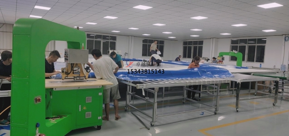 1.檢驗合格後,將膜材料運送至除塵淨化車間。在送料區、布局放樣區、對接區以及三個區域的連接處,鋪設軟板膠,避免膜與地麵直接接觸,防止膜料磨損或弄髒。進入車間的人員必須穿著幹淨的衣服,穿上特製的軟拖鞋或隻穿襪子。