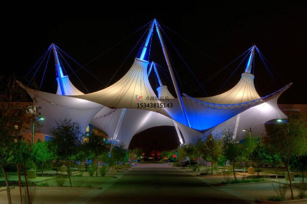 膜結構景觀展示了結構構件清晰受力的藝術之美,但是後期保養與維護很重要。