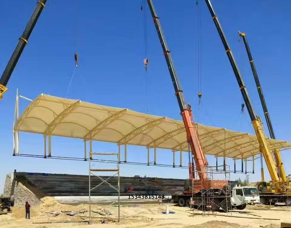 1、雖然膜結構可以形成大麵積的覆蓋空間,從方便膜麵加工製作及安裝的角度來看,大覆蓋麵積的膜結構應進行適當的分區,以減小單片膜麵的麵積。將膜麵分區的另一個好處是萬一以後發生膜材撕裂的情況,拆卸修補或更換的操作比較方便。