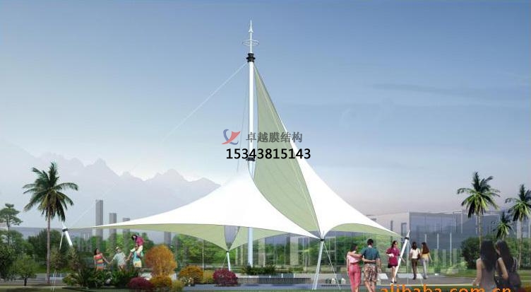 2.標誌性小品 一個城市的中心區反映一個城市的地輿麵貌和民族風情,一起,也是一個城市文化開展程度的標誌。而景象設計要求其具有廣泛的可讀性、老少皆宜,既有超凡脫俗的藝術價值,又能使群眾膾炙人口與群眾息息相通。膜結構以其鮮明的特性和標識性,使用於城市小品設計中。
