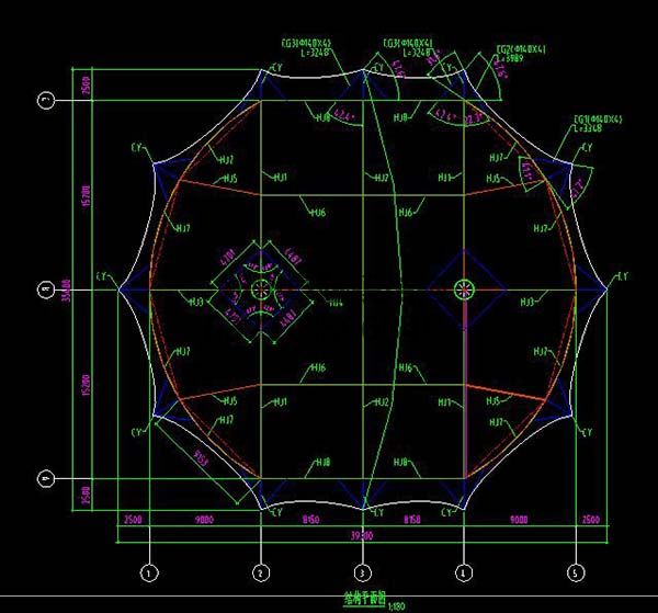 新鄭中興廣場膜結構景觀設計結構平麵圖