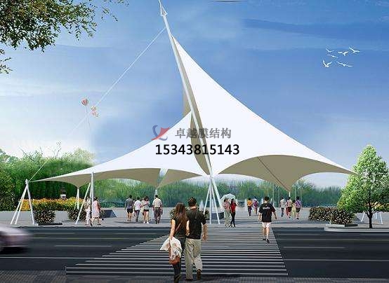 2、一個城市的中心區反映一個城市的地理風貌和民族風情,同時,也是一個城市文化發展程度的標誌。而景觀設計要求其具有廣泛的可讀性、雅俗共賞,既有超凡脫俗的藝術價值,又能使大眾喜聞樂見與大眾息息相通。張拉膜以其輕盈飄逸的造型、柔美並帶有力量的曲線和大跨度和大空間的鮮明個性和標識性,應用於城市小品設計中。