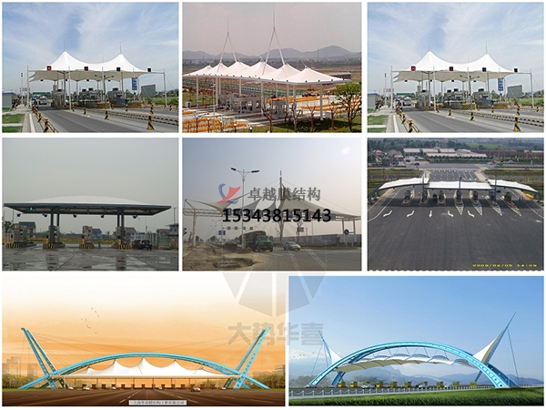 1、膜結構停收費站是由膜材質和鋼材質一起組成的,不同的膜材質相應的功效也不同,有的側重於通光率,有的側重於造型方麵,有的結實堅固但藝術張力不是很好,所以在選擇的時候要根據自己的實際需求來選擇。