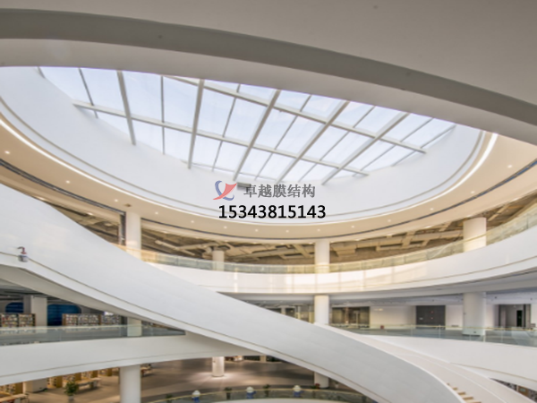 而索係支承式膜結構由空間索係作為主要承重結構,在索係上布置按設計要求張緊的膜材。這種膜結構(怎麽清潔膜結構)主要由索、杆和膜構成,三者共同起承重作用。在通常所稱的張拉整體結構中,如采用膜材,即屬於索係支承膜結構。另外,比較流行的索穹頂結構也屬於此類。還有空氣支承膜結構,具有密閉的充氣空間,並設置維持內壓的充氣裝置,借助內壓保持膜材的張力,形成設計要求的曲麵。