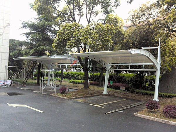 工程結構形式:骨架式膜結構停車棚,自然排水。