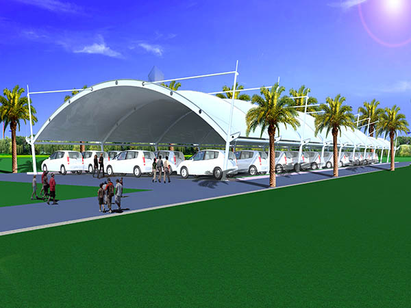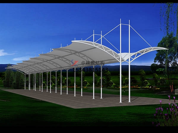 膜材加工製作應嚴格按照設計圖紙和工藝文件的規定進行。膜材的裁剪、熱合等製作過程應采用專用設備,相關的計量儀器應經計量標定合格。 膜結構停車棚工程要使用同一批號