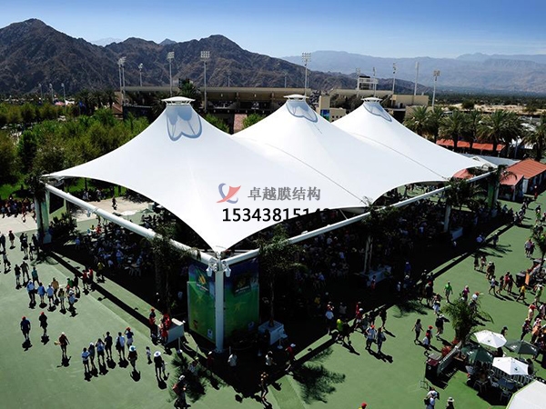 大型膜結構舞台球場都是和膜結構看台一樣采用剛性骨架結構,所以必須保證鋼結構的鏈接到位牢固,做好防腐蝕處理這樣才能使得工程質量到位。節點,膜材與結構的節點,地基節點,膜材拚接的節點和結構鏈接的節點,這些節點是形成膜結構的關鍵,膜材的節點關係到膜結構的穩定,這些節點是膜材受拉力的地方,膜結構靠的就是這樣的拉力形成內應力來維持膜結構的形狀。節點要充分保證其牢固和可活動性。