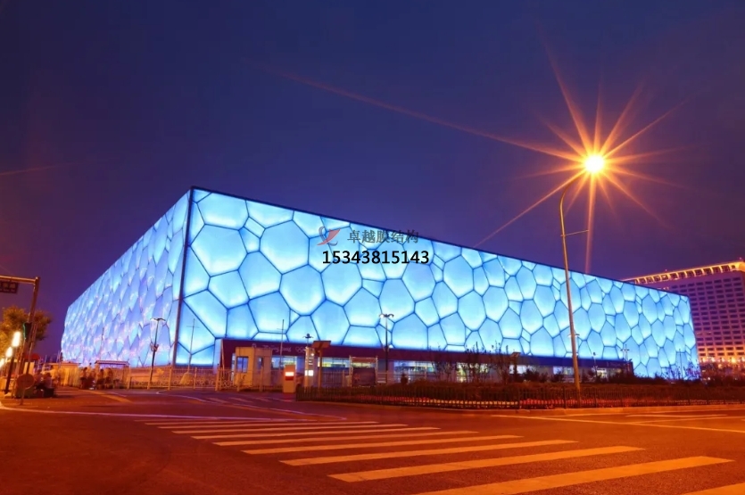 膜結構使得建築輕盈感十足,膜材料的良好透性使得建築界麵透光而不透視。由於該材料(ETFE)氣枕在陽光底下富有通透感光線可以通過漫射和折射進入界麵,讓膜結構建築呈現出朦朧夢幻之美。