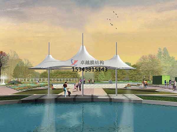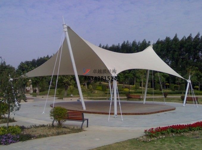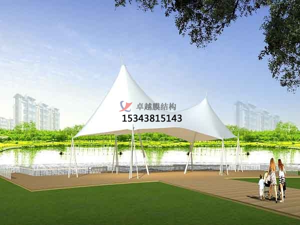 景觀膜結構遮陽棚由立柱和頂棚構成。立柱多由金屬合金製作,如鋼,鋁等,質量輕且質地硬,頂棚則是由膜結構材料製成。