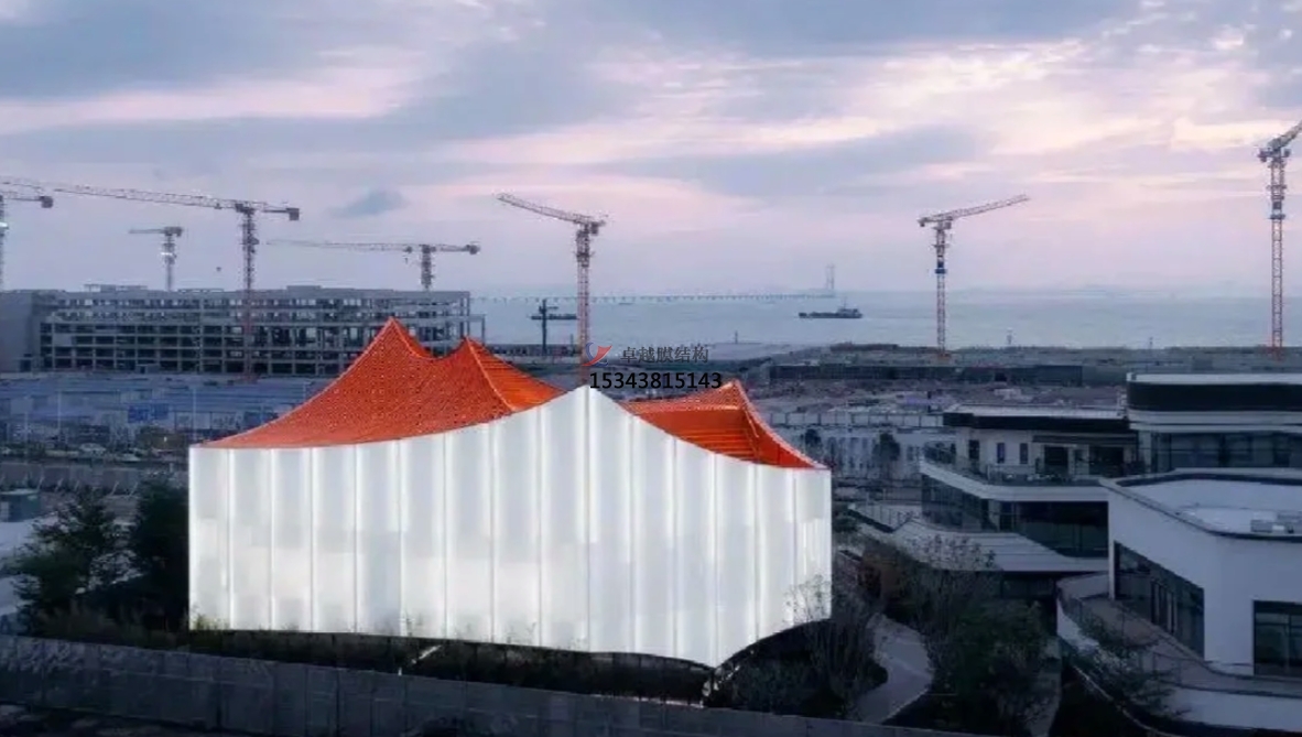 PTFE膜材,這種材料不僅具有半透明的效果,還能減弱建築的壓迫感,增加親和力。