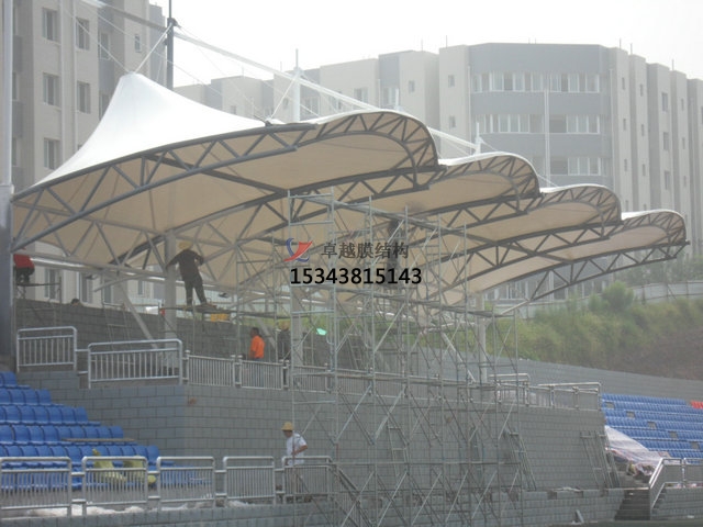 張拉膜看台主要用於各類地方體育場主席台雨棚,各類學校體育場看台雨棚遮蓋,我公司是國內較早從事大懸挑張拉膜結構看台設計施工的專業廠家,下麵介紹一下午夜视频福利在普洱市周邊縣市完工的一些張拉膜看台設計施工案例,我公司先後在普洱市周邊承接了普洱市第中學看台雨棚、雲南省普洱市民族中學張拉膜看台罩棚、普洱第中學張拉膜看台遮陽棚張拉膜看台遮陽棚等設計施工項目,簡介如下: