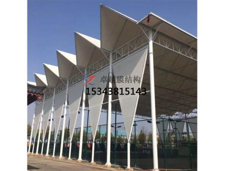 在安裝過程中,需要注意控製膜材料的張力和位置,保證其均勻分布和穩定支撐。同時,還需要進行節點連接和加固,整個罩棚的穩定性和安全性。最後,需要進行驗收和保養,保證膜結構的長期使用和維護。