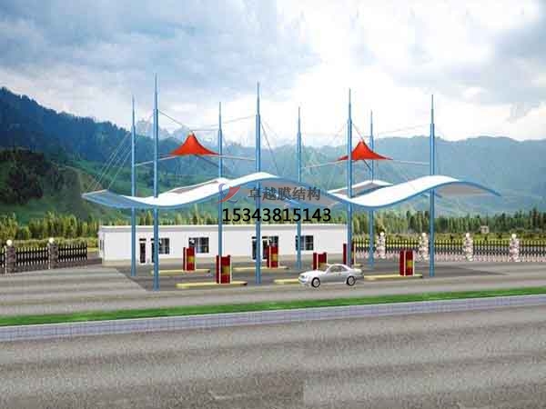 八、加氣站雨棚施工建築物的全部檢修保養項目應包括膜麵的形狀、變形、初期張力狀態、全部或局部的褶皺、破裂和斷裂。