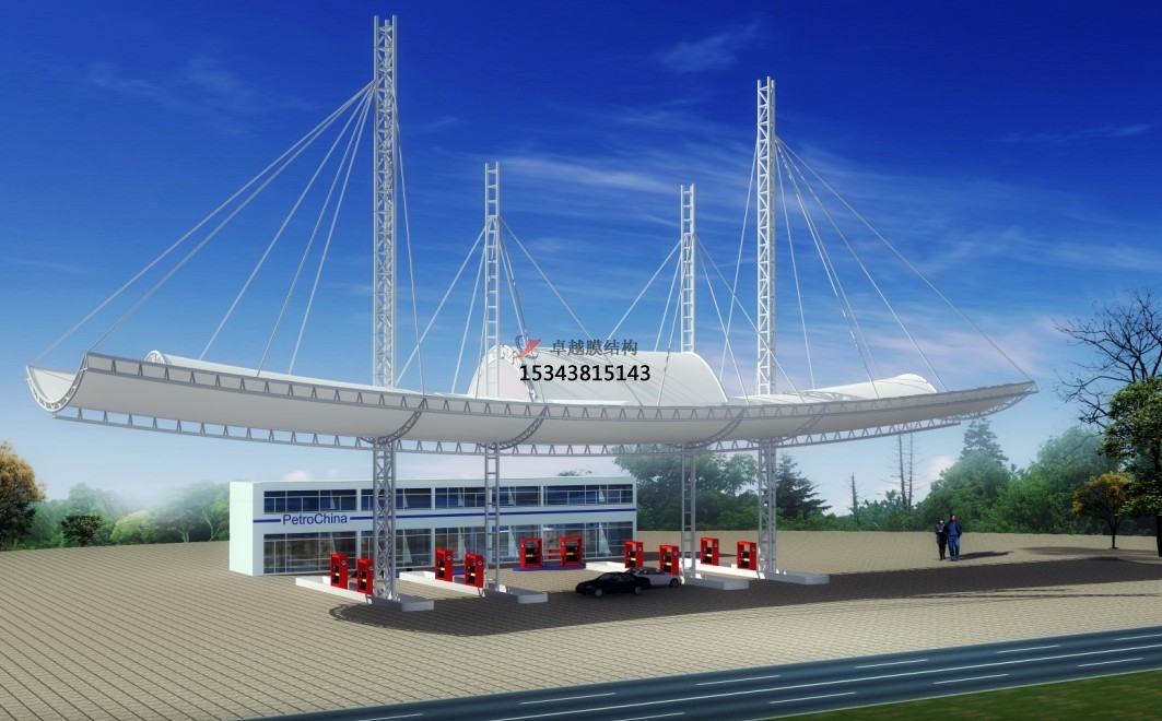 本公司是一家集電纜、膜結構、張拉膜及異形鋼結構的規劃、開發、加工、製作、施工、裝置和保護為一體的技能工程公司。公司開發的膜結構加油站加氣站風格共同,藝術性強,具有很強的現代氣息,廣泛應用於景象膜體育場、高速公路收費站、加油站、大型停車場、展覽館、公共場所、休閑場所、景點裝修等。假如您有任何問題或對膜結構工程感興趣,請點擊聯係咱們或致電咱們的網站,咱們將真誠地為您服務。