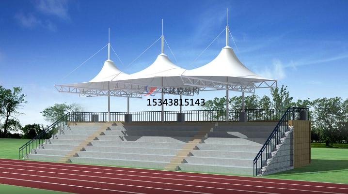張拉膜看台主要用於各類地方體育場主席台雨棚,各類學校體育場看台雨棚遮蓋,我公司是國內較早從事大懸挑張拉膜結構看台設計施工的專業廠家,下麵介紹一下午夜视频福利在廊坊市周邊