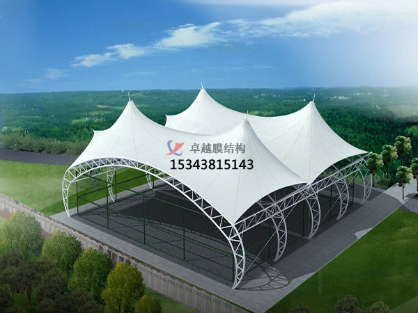 薄膜結構在結構及建築設計上充分體現了膜結構的輕巧、特點,可以在大跨度、大體量的公共建築中實現人們所追求的那種自然、和諧、明亮的內部空間間四。這種結構特別適用於大型體育場館、入口廊道、小品、公眾休閑娛樂廣場、展覽會場、購物中心等領域。