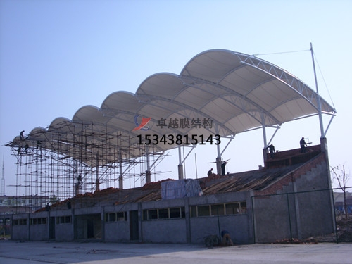 由於膜結構是張力結構的一種,隻有在一定的張力功能下,膜結構才有一定的外形和剛度,因而膜結構建築表現了力的平衡美,是一種受力更為合理的結構形式。采用輕質膜材,同時輔以柔性拉索、輕型鋼桁架的結構形式,可以很好地達到大跨度、覆蓋大空間的目的。