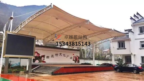 它由膜材、鋼索和立柱組成,通過鋼索或立柱將張力引入膜材中,實現平穩驅動。實踐後的創造性、創新性和美感,也能表現出商業廣場雨棚搭建的精神結構形式。在大跨度空間中,多采用鋼索和壓縮材料組成鋼索網支撐上膜材料,具有施工精度高、結構性能強、遊戲表現力豐富等優點。