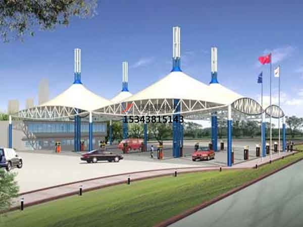 線狀剛性支撐也是加氣站雨棚施工非常重要的支撐部分,其實還可以運作結構的連接或者膜片之間的維護結構。加氣站雨棚施工采用剛性邊界可使內部線狀支承具有多種形式,對於加氣站雨棚施工而言拱是一種理想的承荷元件,拱元件沿著支撐線的合理布局方便了薄膜鞍狀區域的形成,作為承荷元件的拱僅僅局限於承受壓力應力,與僅受純張力限製的膜的受力線性相反,因此這種支撐方式可以使加氣站雨棚施工更加穩固。