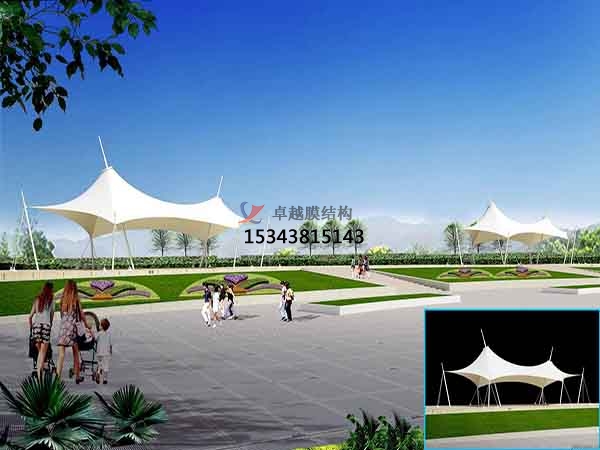 2、美觀:除了一般雨蓬不可比擬的實用、耐用、遮風擋雨的功能外,景觀膜結構罩棚更像是一座雕塑,一件藝術品,給人美的視覺享受。其柔美,其曲線,其剛柔並濟,其豐富造型,其潔白無瑕,讓人眼前一亮,回味悠長。因為景觀的頂篷是公路或地區設置名稱標牌的主要位置,是公路或地區的重要標誌;所以使用景觀張拉膜結構有較好的標識招攬效果。