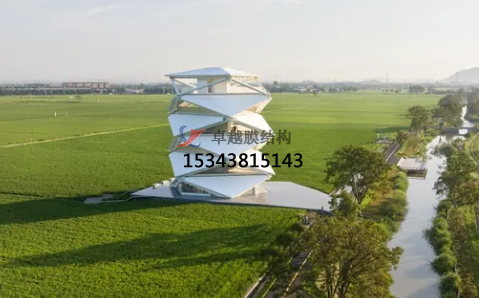 稻田上的燈塔的落成為當地的鄉村提供了新的觀景點和社交聚集地。瞭望塔塔高23m,坐落於國家級現代農業先行示範區高標準農田的中心區域。它如同雕塑一般從稻田中螺旋升起,三角形元素和白色PTFE薄膜定義了其簡潔的設計語言,在鄉村大地上賦予了其強烈的存在感。
