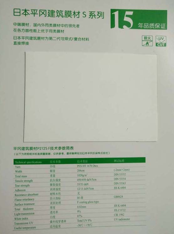 日本平岡建築膜材,全球高端膜材中的佼佼者,具有超自潔性和超耐久性,15年廠家品質保證。